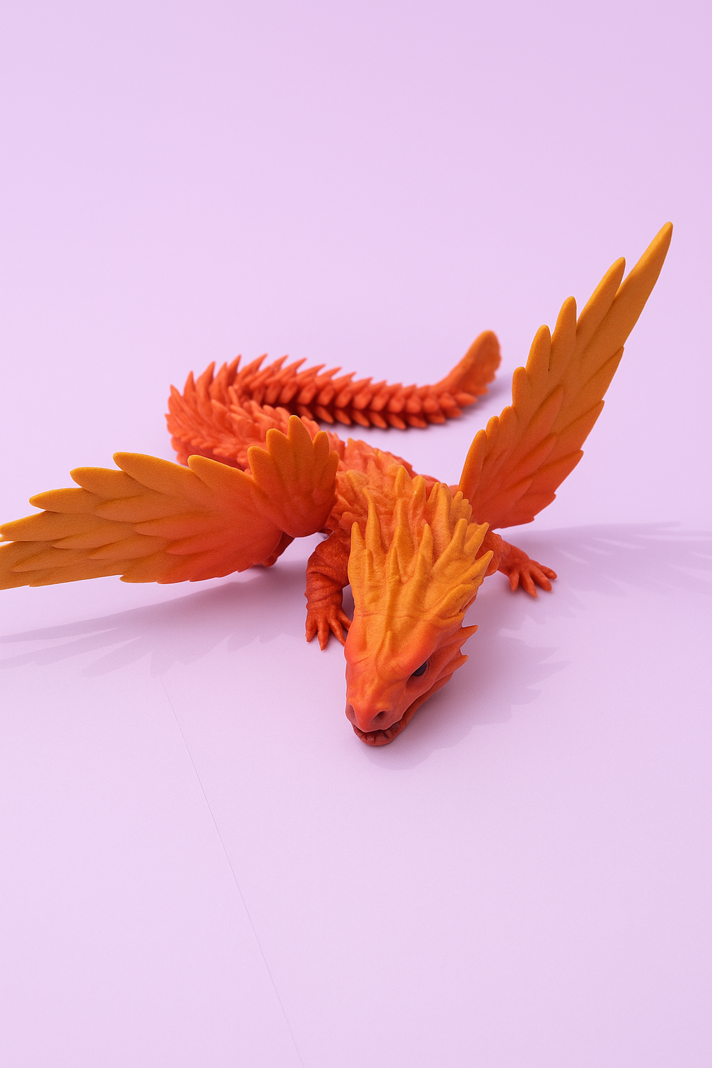 Unleash the fire with the Blaze Feather Dragon β a stunning winged creature bursting with flame-like colors and wild energy. With feathery wings, sharp horns, and a twisty pose, this dragon looks like it just flew out of a volcano! Fully articulated and 3D-printed in one piece, itβs perfect for display or fiery fantasy play.
